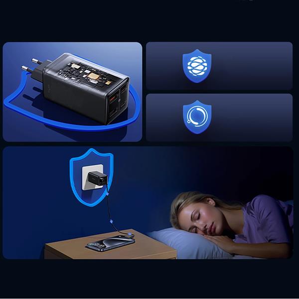 Baseus GaN6 Pro 100W pozwala ładować laptopa, telefon i inne urządzenia równocześnie, bez utraty mocy czy bezpieczeństwa. Idealny do biura, domu i podróży.