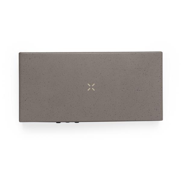 Ładowarka bezprzewodowa 10W, wbudowany zegar cyfrowy, funkcje: alarm, temperatura, zegar i data, obudowa wykonana z łusek kawowych i bawełny z recyklingu, działa z urządzeniami posiadającymi możliwość ładowania indukcyjnego, zgodny z certyfikatem GRS (Global Recycled Standard)