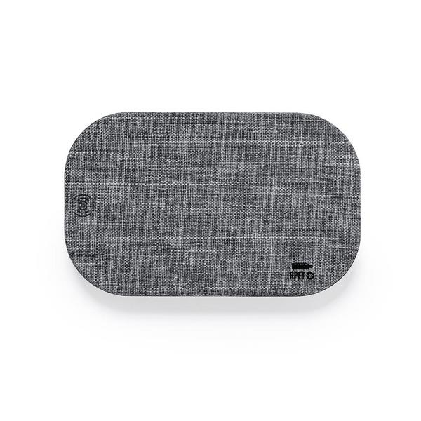 Bezprzewodowa ładowarka 10W wykonana z RPET, działa z telefonami posiadającymi możliwość ładowania indukcyjnego, wejście micro USB 5-9V/1.5-1.67A, kabel ładujący w komplecie, antypoślizgowa podstawa