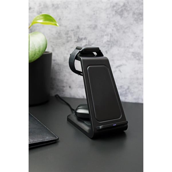 Ładowarka bezprzewodowa 15W, 3 w 1, stojak na telefon, działa z urządzeniami posiadającymi możliwość ładowania indukcyjnego, 3 cewki ładowania bezprzewodowego (15W, 3W, 2W), możliwość ładowania trzech urządzeń jednocześnie, wejście USB-C, kabel USB-C w komplecie