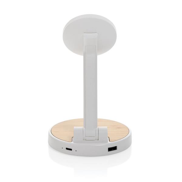 Ładowarka bezprzewodowa 2 w 1, magnetyczna ładowarka bezprzewodowa 15W, ładowarka bezprzewodowa 5W do słuchawek i drobnych akcesoriów, wykonana z ABS z recyklingu i bambusa, działa z telefonami posiadającymi możliwość ładowania indukcyjnego, wejście 9V/3A, wyjście dla telefonu 9 V/1.1 A, 9 V/1.67 A, 15 W, wyjście dla słuchawek 5V/1A, 5W, kabel 120 cm z TPE z recyklingu w komplecie