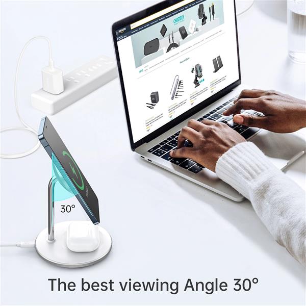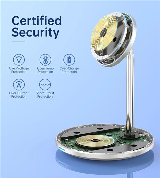 Elegancka i nowoczesna ładowarka indukcyjna Choetech T581-F umożliwia ładowanie dwóch urządzeń w jednym czasie. Pracuje z mocą do 15 W i zapewnia szybkie ładowanie indukcyjne. Wspiera technologię MagSafe i Qi. Wytrzymała konstrukcja z aluminium i tworzywa sztucznego sprawia, że ładowarka indukcyjna Choetech T581-F posłuży Ci przez długie lata.