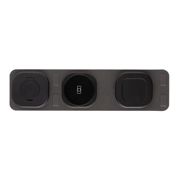 Ładowarka bezprzewodowa 3 w 1, magnetyczna ładowarka bezprzewodowa do telefonu 15W, ładowarka bezprzewodowa 5W do słuchawek i innej drobnej elektroniki, ładowarka bezprzewodowa 2,5W do smartwatcha (działa tylko z urządzeniami iOS), składana, działa z telefonami posiadającymi możliwość ładowania indukcyjnego, wykonana z ABS z recyklingu z certyfikatem RCS, całkowita zawartość materiałów z recyklingu obliczona w oparciu o wagę całkowitą przedmiotu: 38%, wejście 9V/1.1A, wyjścia: 9V/1.1A, 5V/1A, 5V/0.5A, w pudełku z papieru kraftowego