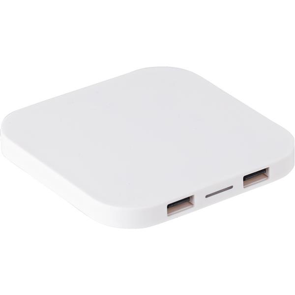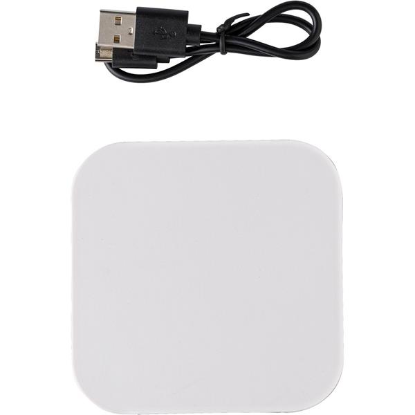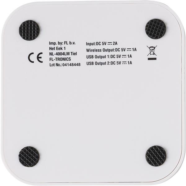 Ładowarka bezprzewodowa, wyjście USB do ładowania za pomocą kabla, bezprzewodowe ładowanie jest kompatybilne ze wszystkimi urządzeniami posiadającymi możliwość ładowania indukcyjnego, wejście micro USB, wyjście bezprzewodowe 5V/1A, wyjście USB 5V/2A, kabel w komplecie