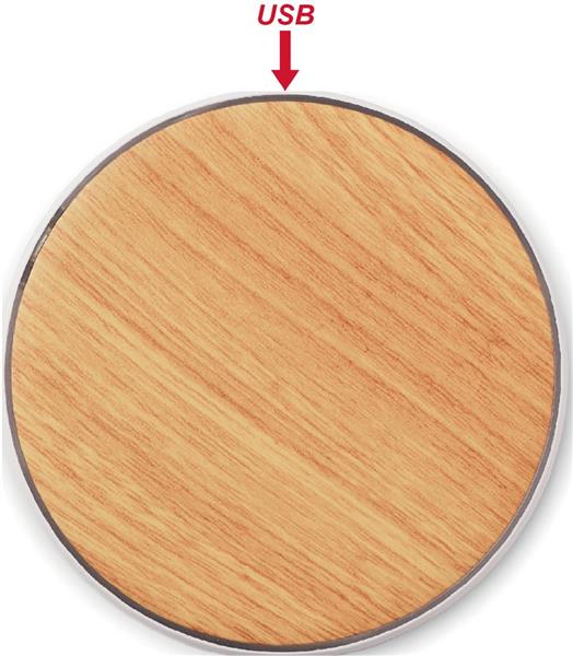 Bezprzewodowa ładowarka z ABS z imitacją bambusa. Podłącz urządzenie do komputera, połóż na nim smartfon i ładuj. Wyjście: DC5V/1A (5W). Kompatybilna z systemami Android, iPhone® 8, X i nowszymi. Bambus jest produktem naturalnym, dlatego mogą wystąpić nieznaczne różnice w kolorze, wzorze i rozmiarze.