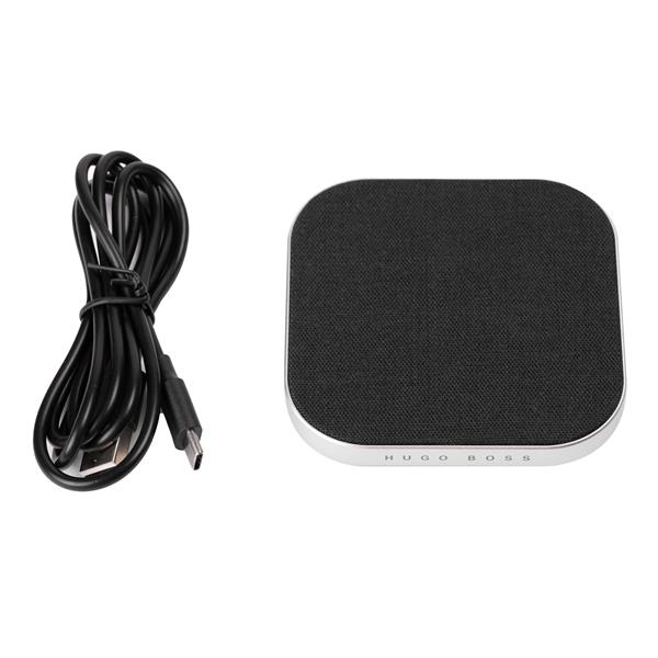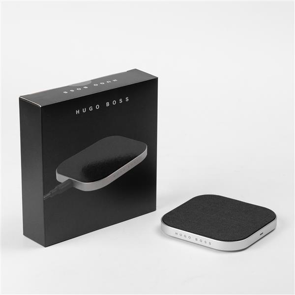 Ładowarka bezprzewodowa Hugo Boss jest nie tylko bardzo praktyczna, ale również przyciąga wzrok. Aby naładować swój smartfon, nie potrzebujesz kabla. Wystarczy umieścić urządzenie na górze i gotowe!, samo zacznie się ładować. Kompatybilna z wszystkimi urządzeniami Q1. Ta ładowarka o kwadratowym designie ma aluminiowe wykończenie z eleganckimi, okrągłymi rogami i delikatnym logo Hugo Boss. Podkładka do ładowania wykonana jest z tkaniny. Kompaktowy rozmiar 84 x 84 x 9,5 mm sprawia, że ładowarkę można łatwo zabrać ze sobą. Ten przedmiot jest dostarczany do Ciebie w luksusowym pudełku prezentowym Hugo Boss, zawiera również 1M kabel Type-C i instrukcję obsługi. Dostępny w kolorze ciemnego chromu i chromu (srebrny).