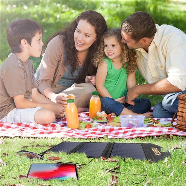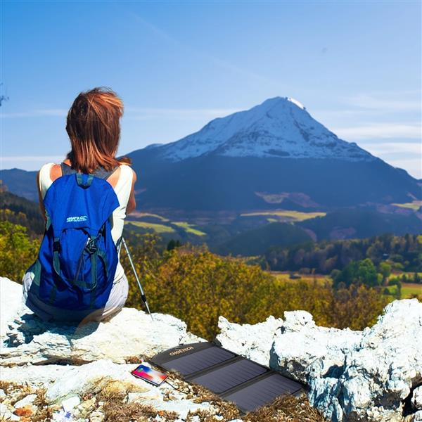 Jesteś na wycieczce i chcesz mieć stały dostęp do prądu, by móc doładować swój smartfon? Składana ładowarka solarna do telefonu Choetech SC001 to niezwykle wydajne urządzenie, a przy tym naprawdę kompaktowe. Po złożeniu ładowarka jest niewiele większa od tabletu, możesz więc bez problemu schować ją np. w plecaku. Dzięki niewielkim wymiarom, niskiej wadze i przemyślanej konstrukcji sprawdzi się również podczas pieszych wycieczek. Ładowarka solarna do telefonu ma wbudowane dwa złącza USB, więc jest kompatybilna z większością urządzeń mobilnych (również tabletami, słuchawkami TWS czy smartwatchami). Tworzą ją trzy wydajne panele, które mogą ładować mocą do 19 W. Solarna ładowarka Choetech jest też odporna na wodę, a wbudowany w nią inteligentny chip identyfikuje typ urządzenia, które ładujesz, aby uniknąć przegrzania.