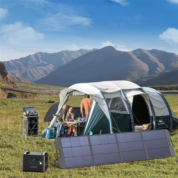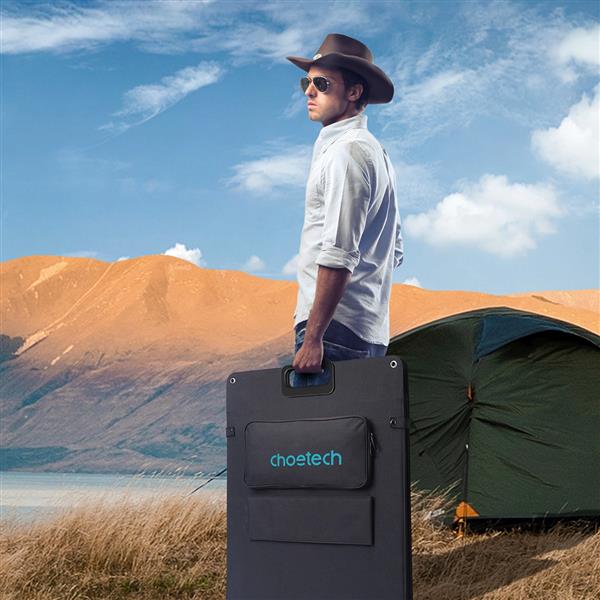 Interesuje Cię przenośny panel słoneczny? Postaw na Choetech SC011. To składana ładowarka solarna 200 W, która perfekcyjnie sprawdzi się jako zestaw solarny do kampera. Będzie świetnym wyborem dla wszystkich, które cenią sobie dużą moc, kompaktowe wymiary i niewielką wagę. Wykorzystasz ją podczas wszelkich wyjazdów: nie tylko kamperem, ale i przyczepą kempingową, busem lub samochodem na zagraniczne wakacje. Przekształci energię słoneczną w elektryczną w każdych warunkach atmosferycznych. Dzięki materiałowi Oxford ładowarka solarna 200 W Choetech jest wodoodporna (na poziomie IPX65) i trwała. Ma solidną, mocną konstrukcję, którą możesz ustawić pod kątem 45 stopni.