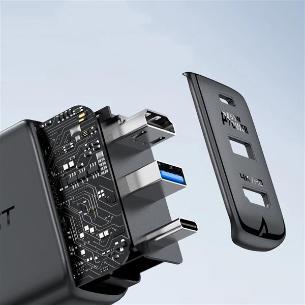 Acefast 2w1 ładowarka sieciowa GaN 65W USB Typ C / USB, adapter przejściówka HDMI 4K@60Hz (zestaw z kablem) (A17)