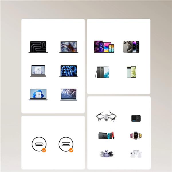 Koniec z koniecznością posiadania kilku różnych ładowarek. Ładowarka GaN Joyroom JR-TCL02 jest kompatybilna z szeroką gamą urządzeń: od smartfonów i tabletów, przez drony DJI i kamery GoPro, aż po konsole Nintendo Switch, zegarki Apple Watch, słuchawki AirPods i Samsung Galaxy Buds. Niezależnie od marki czy typu urządzenia, możesz mieć pewność, że dzięki ładowarce Joyroom JR-TCL02 Twoje urządzenia będą zawsze gotowe do użycia.