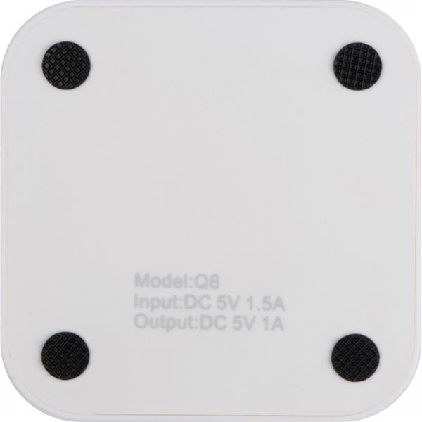 Ładowarka indukcyjna, kompatybilna z telefonami wyposażonymi w technologię QI. Posiada 2 wejścia USB, dołączono kabel USB.