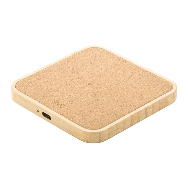 Szybka ładowarka indukcyjna z bambusa i naturalnego korka (15W). W zestawie kabel do ładowarki USB.
