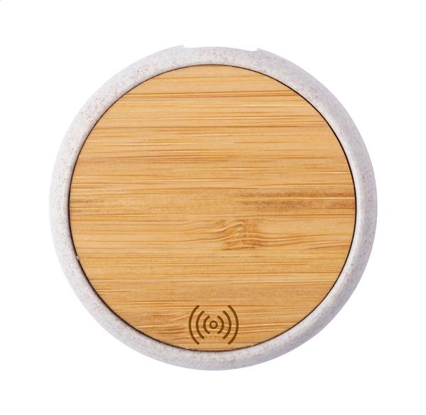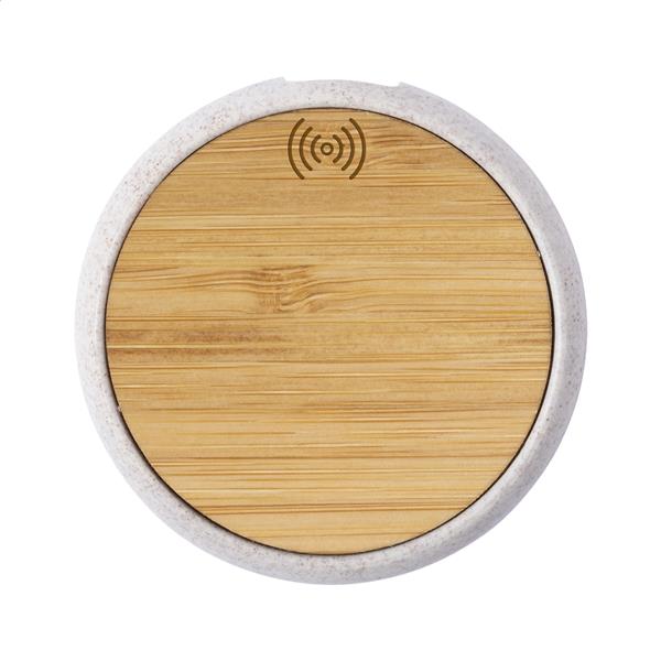 Ładowarka indukcyjna (10W) w obudowie z bambusa i ekologicznego plastiku ze słomy pszenicznej. Zawiera kabel USB.