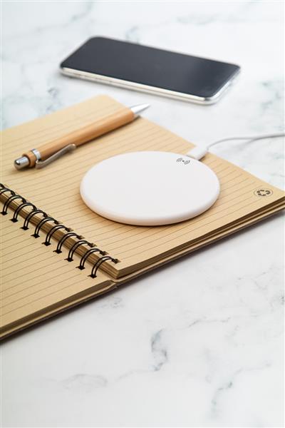 Szybka ładowarka indukcyjna z ABS z recyklingu (15 W). W zestawie kabel do ładowarki USB.