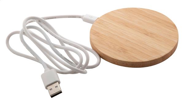 Ładowarka indukcyjna (5W) w bambusowej obudowie. Zawiera kabel USB.