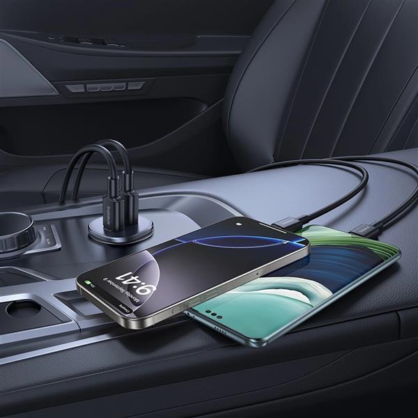 Baseus GoTrip to kompaktowa i wydajna ładowarka samochodowa, która dzięki dwóm portom USB-C pozwala na szybkie ładowanie dwóch urządzeń jednocześnie. Obsługuje popularne protokoły szybkiego ładowania, takie jak PD, QC, PPS, FCP i AFC. Inteligentny układ rozpoznaje podłączone urządzenia i dynamicznie dostosowuje parametry, zapewniając bezpieczne i efektywne ładowanie. Poliwęglanowa obudowa i krzemowy chip kontroli temperatury gwarantują skuteczne odprowadzanie ciepła i ochronę urządzeń. Jej minimalistyczny rozmiar idealnie wpasowuje się w gniazdo zapalniczki i nie zaburza estetyki wnętrza auta.