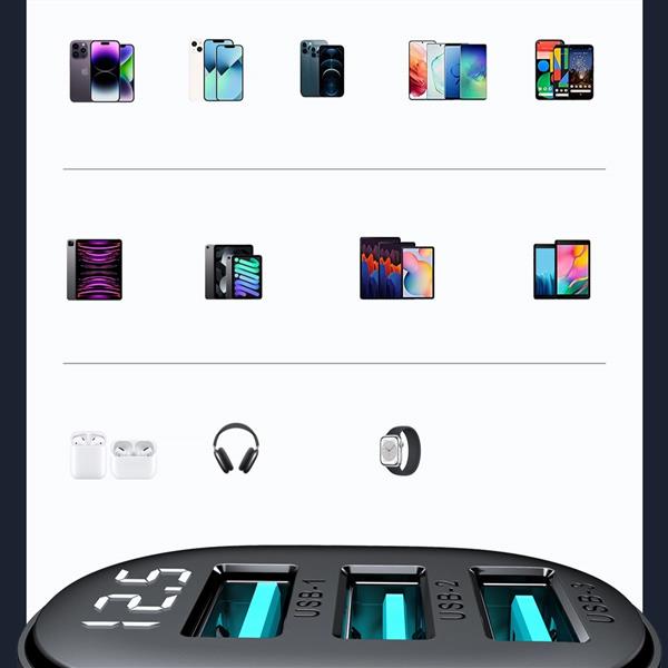 Czy zastanawiasz się, jak sprawnie naładować wszystkie swoje urządzenia w samochodzie, nie obciążając przy tym akumulatora? Ładowarka samochodowa Joyroom JR-CCD03 to rozwiązanie, które łączy w sobie funkcjonalność i bezpieczeństwo. Dzięki 3 portom USB-A możesz naładować trzy urządzenia jednocześnie, a wbudowany wyświetlacz cyfrowy umożliwia monitorowanie napięcia baterii samochodowej w czasie rzeczywistym. To urządzenie wykonane z materiału odpornego na ogień zapewnia nie tylko efektywność, ale także bezpieczeństwo ładowania, redukując wydzielanie ciepła.