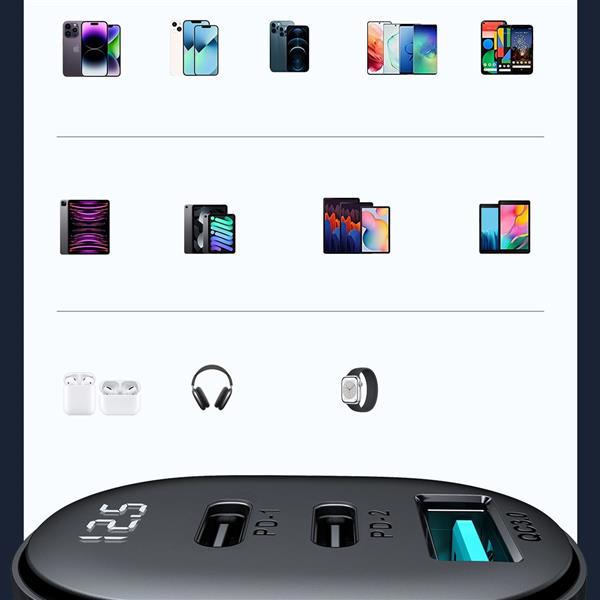 Zanurz się w świecie nieograniczonej mocy i wygody dzięki ładowarce samochodowej Joyroom JR-CCD04 o mocy do 30W. Wyposażona w trzy porty – dwa USB-C i jeden USB-A – pozwala na ładowanie trzech urządzeń jednocześnie. Zintegrowany cyfrowy wyświetlacz umożliwia monitorowanie napięcia w czasie rzeczywistym, gwarantując bezpieczeństwo i wydajność. Dzięki wsparciu dla najnowszych protokołów ładowania możesz ładować swoje urządzenia błyskawicznie i bezpiecznie. Ładowarka jest wykonana z materiału odpornego na ogień, co minimalizuje wydzielanie ciepła, zapewniając bezpieczne użytkowanie.