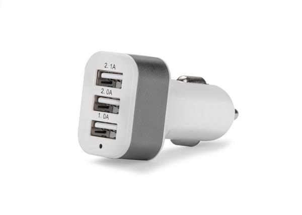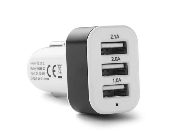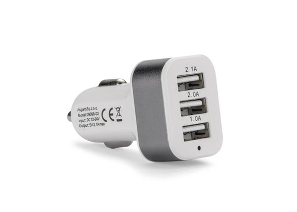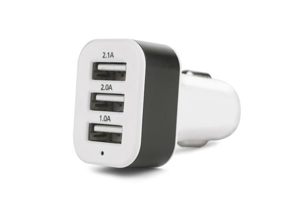 Ładowarka samochodowa posiadająca trzy porty USB. Może ładować do trzech urządzeń mobilnych jednocześnie. Od teraz prawie każdy z pasażerów może ładować swój telefon lub tablet w tym samym czasie! Parametry: moc wejścia 12-24V, moc wyjścia 5V/2.1A, 2.0A, 1A (2.1A max).