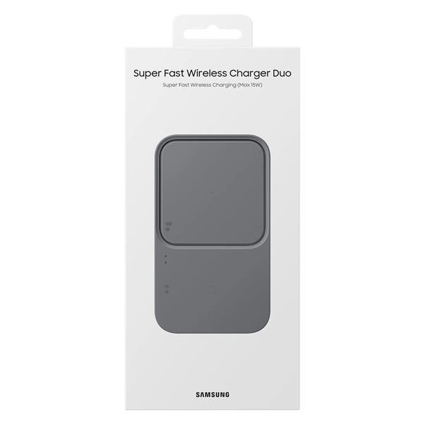 Ładowarka indukcyjna Samsung Wireless Charger Duo EP-P5400BBEGEU zapewnia szybkie ładowanie 15W – Twoje urządzenia będą gotowe do użycia w mgnieniu oka. Dzięki zgodności z adapterami podróżnymi i adaptacyjnemu szybkiemu ładowaniu bezproblemowo dopasuje się do podłączonych urządzeń.
