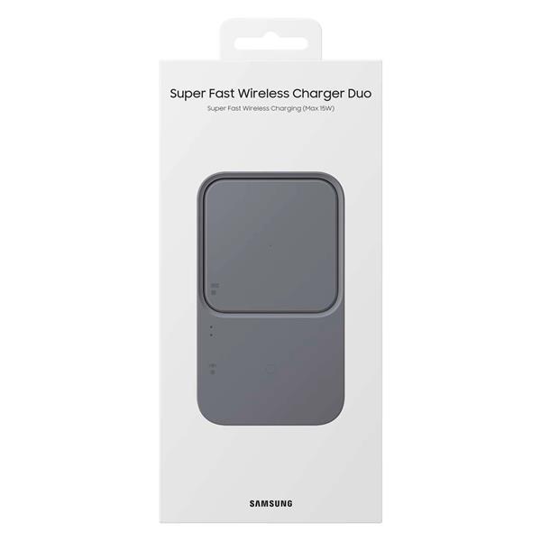 Ładowarka indukcyjna Samsung Wireless Charger Duo EP-P5400TBEGEU zapewnia szybkie ładowanie 15W – Twoje urządzenia będą gotowe do użycia w mgnieniu oka. Dzięki zgodności z adapterami podróżnymi i adaptacyjnemu szybkiemu ładowaniu bezproblemowo dopasuje się do podłączonych urządzeń.