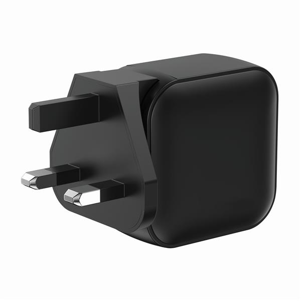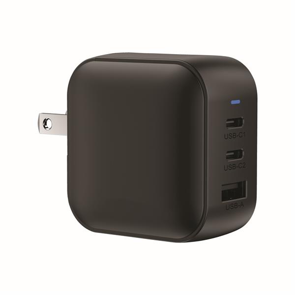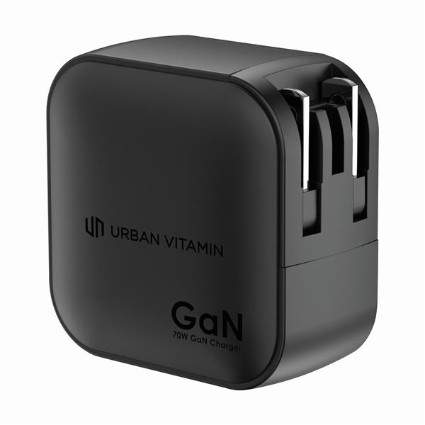 Ładowarka ścienna, adapter podróżny, moc całkowita do 70W, dwa wyjścia USB-C i USB, w komplecie wtyczki EU, GB i USA, wykonana z materiałów z recyklingu, całkowita zawartość materiałów z recyklingu obliczona na podstawie wagi całkowitej produktu: 19%
