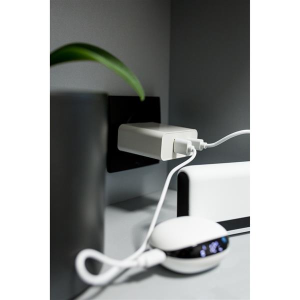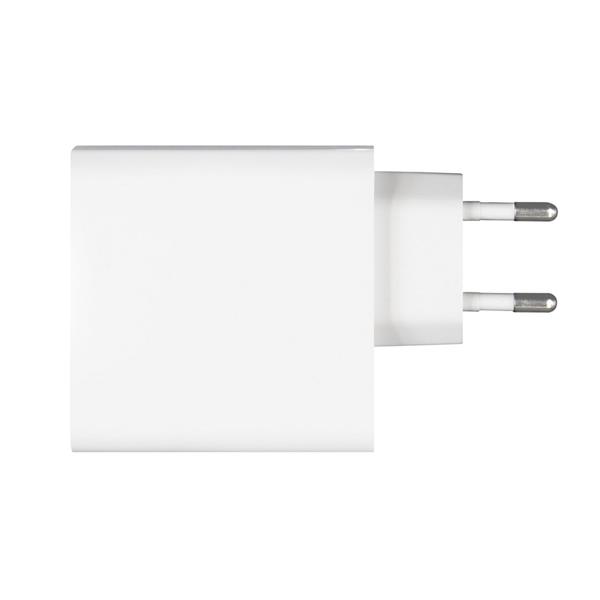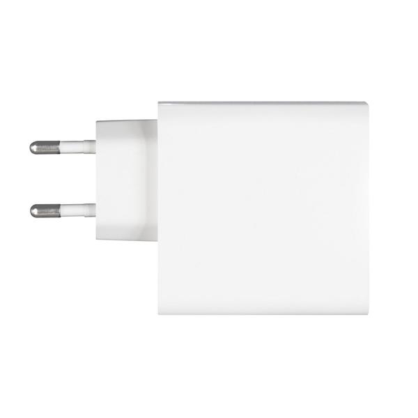 Ładowarka ścienna z wyjściem USB oraz 2 wyjściami USB-C, moc całkowita do 65W (USB-C1: max. 45W, USB-C2: max. 20W, USB-A: max 18W), wejście 100-240V, wyjście USB-C 5-15V/3A, wyjście USB 5-12V/1.5-3A, do użytku wewnątrz pomieszczeń