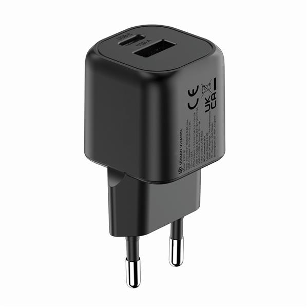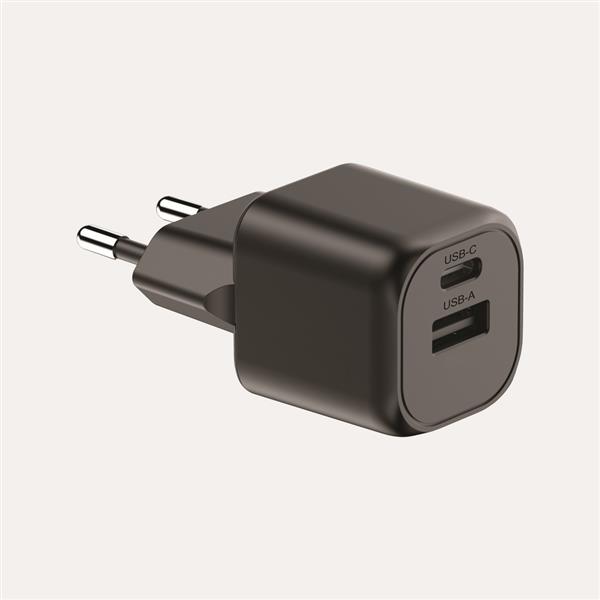 Ładowarka ścienna, moc całkowita do 20W, wyjścia USB-C i USB, wykonana z materiałów z recyklingu, całkowita zawartość materiałów z recyklingu obliczona na podstawie wagi całkowitej produktu: 38%