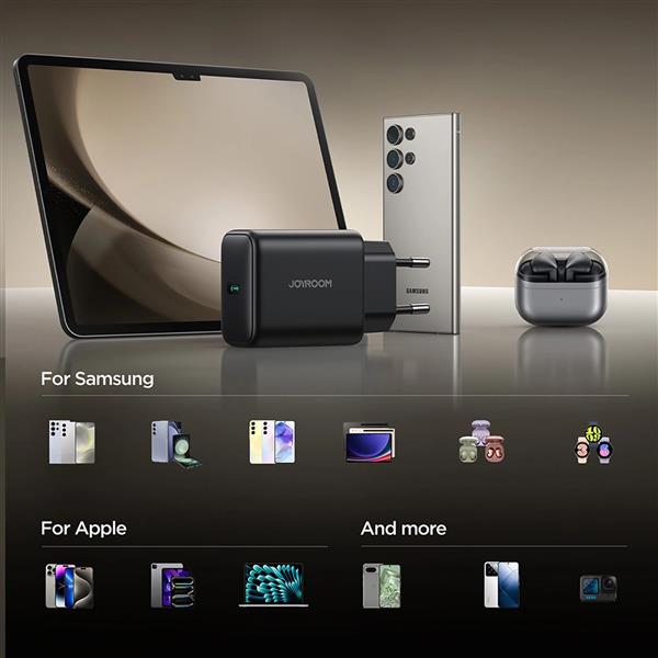 Wykorzystanie azotku galu (GaN) sprawia, że ładowarka Joyroom jest bardziej wydajna, generuje mniej ciepła i jest bezpieczniejsza w użyciu w porównaniu do tradycyjnych ładowarek.