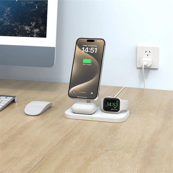 Zminimalizuj ilość niezbędnych akcesoriów ładujących do minimum, dzięki funkcjonalnej stacji ładującej A22 od marki Tech-Protect. Ten sprytny gadżet pozwala na odnawianie energii we wszystkich smartfonach z technologią Magsafe, słuchawkach bezprzewodowych Apple Airpods oraz smartwach’ch marki Apple.