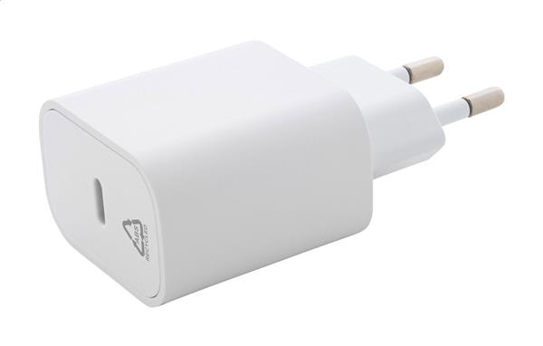 Szybka ładowarka ścienna USB z ABS z recyklingu 1 portem USB-C. Obsługuje technologię szybkiego ładowania (PD20W / QC3.0). Z 2-biegunową wtyczką europejską.