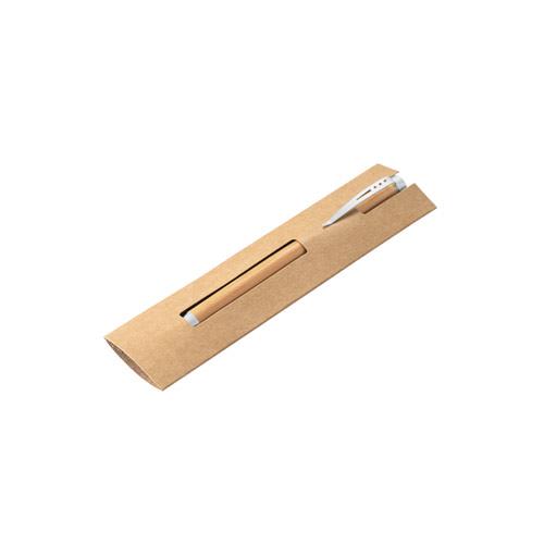 Bambusowy długopis z mechanizmem obrotowym i metalowym klipsem. Niebieski tusz. W zestawie kartonowe etui upominkowe. Ponieważ produkt jest wykonany z naturalnych materiałów, kolor produktu oraz wynik drukowania mogą się różnić w zależności od produktu. o12 x 140 mm | Etui: 155 x 40 mm