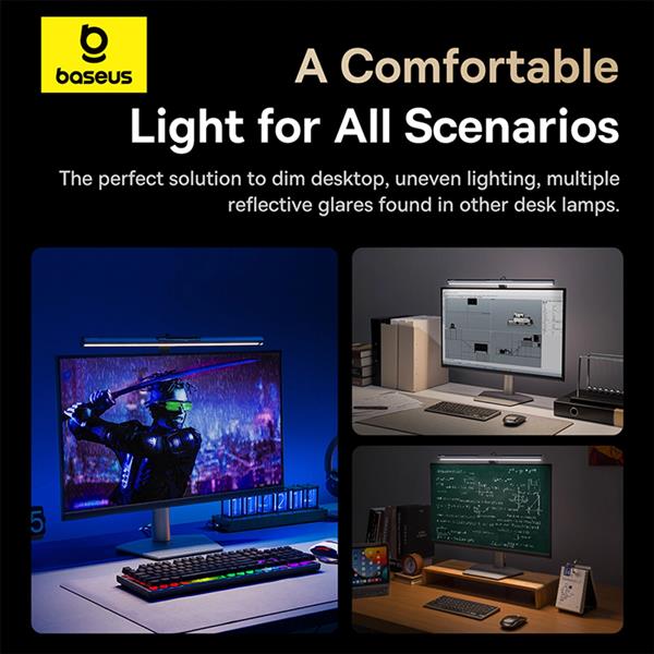 Lampa na monitor Baseus i-wok 3 BS-LT007 oferuje asymetryczną projekcję światła, dzięki czemu eliminuje odblaski i nie męczy oczu. Wygoda i mniejsze zmęczenie wzroku podczas pracy – gwarantowane. Świetnie sprawdzi się też podczas grania w gry wideo, studiowania i uczenia się w nocy, a nawet czytania książek.