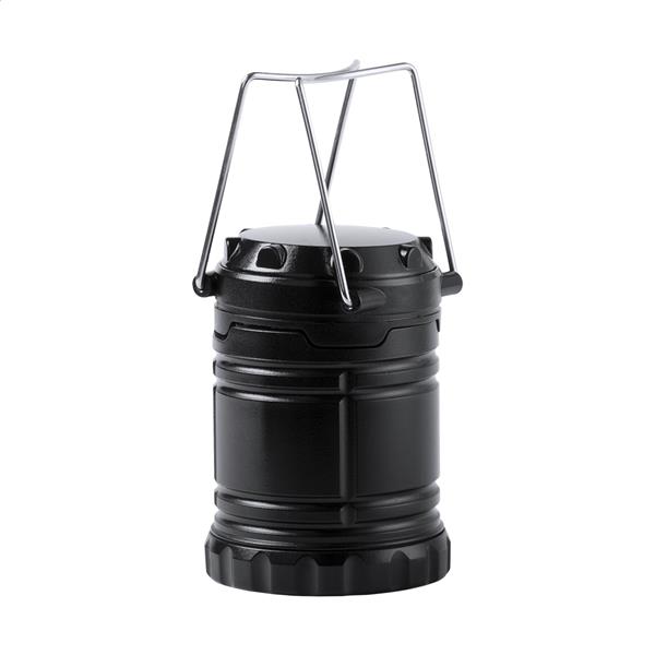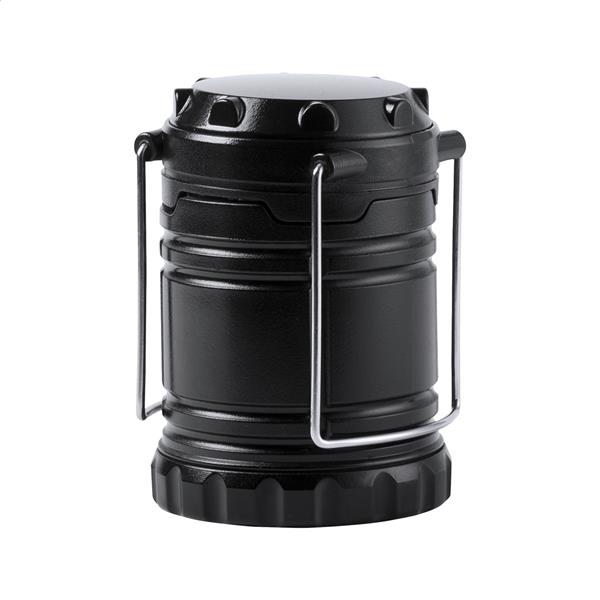 Przenośna lampa kempingowa z metalowych uchwytem. 30 diod LED w 3 żarówkach COB. Zasilana 3 bateriami AAA. Brak baterii w zestawie. W kartoniku.