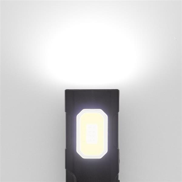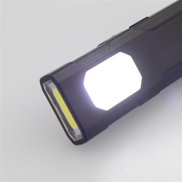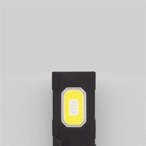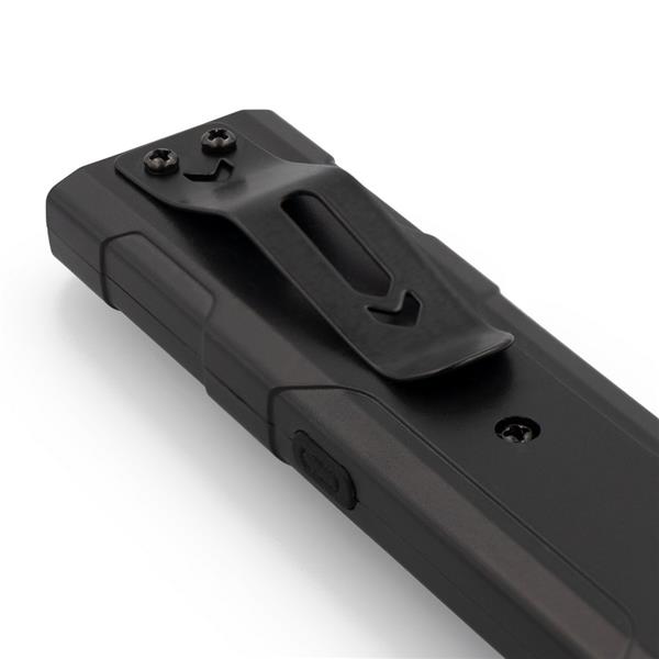 Lampka aluminiowa z klipsem, do przypięcia na plecak lub odzież, 2 diody COB, 5 trybów: 100% przednia lampka, 50% przednia lampa, 100% boczna lampka, 50% boczna lampka, migające światło czerwone boczna lampka, posiada magnes na tylnej stronie, ładowanie lampki przez port USB-C; kabel do ładowania w komplecie
