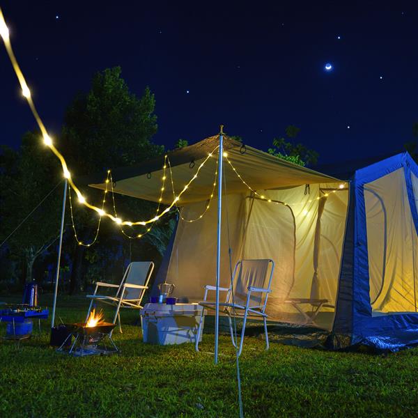 Lampka kempingowa z trzema trybami świecenia: słabym, mocnym i czerwonym migającym. Lampa zawiera 24 białe i 12 czerwonych diod LED. Ma wbudowany 10-metrowy kabel świetlny, który można wykorzystać do ozdobienia namiotu podczas biwakowania. Wodoodporność: IPX4. Jasność: 80–250 lumenów.