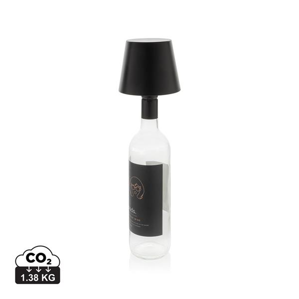 Lampka na butelkę, lampka na biurko, lampka stołowa, wykonana z ABS i metalu z recyklingu, 3 tryby świecenia, 31 diod LED, jasność 120 lumenów, wbudowany akumulator o pojemności 1200 mAh umożliwia świecenie do 4 godzin na jednym ładowaniu, ponowne ładowanie w 2 godziny, ładowana przez USB C, kabel 80 cm z TPE z recyklingu w komplecie, całkowita zawartość materiałów z recyklingu obliczona w oparciu o wagę całkowitą przedmiotu: 32%, w pudełku z certyfikatem FSC® mix
