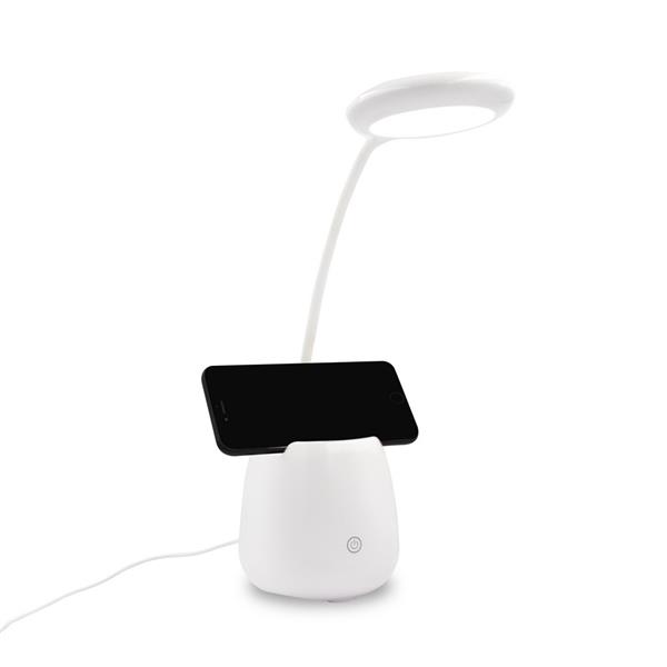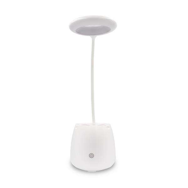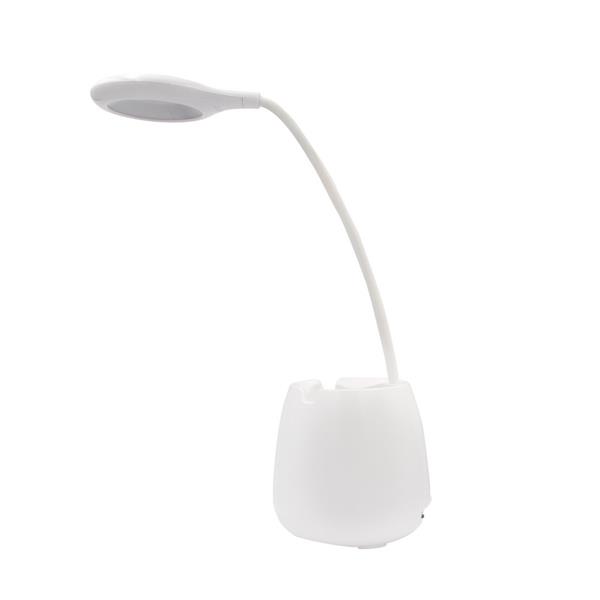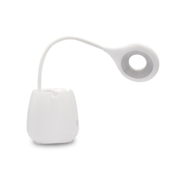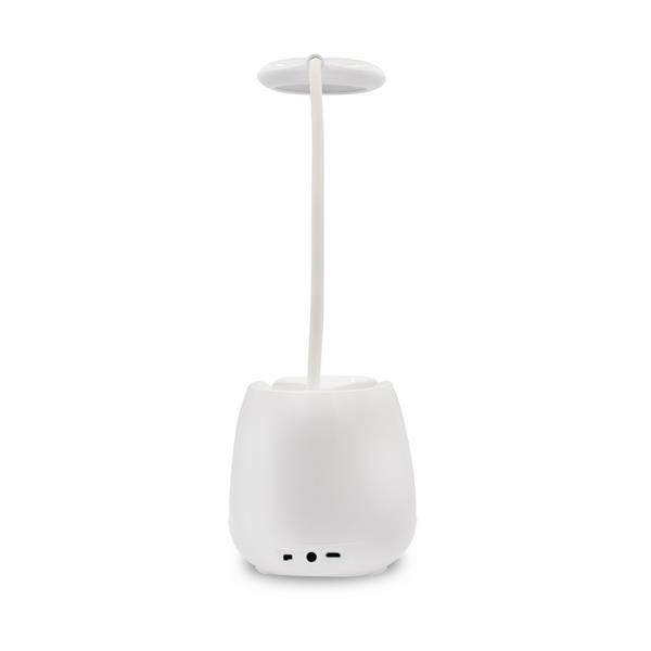 Elastyczna lampka na biurko, 3 tryby świecenia, bateria 1200 mAh, głośnik bezprzewodowy BT 5.0 3W, stojak na telefon, pojemnik na przybory do pisania, wejście AUX, przycisk dotykowy ON/OFF, kabel micro USB w komplecie