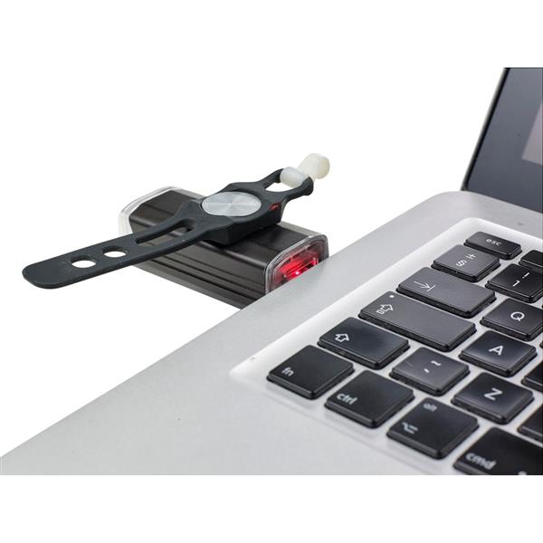 Lampka rowerowa COB ładowana przez USB, 4 tryby oświetlenia: stały, ściemniony, migający szybko, migający wolniej, posiada magnes i pasek mocujący
