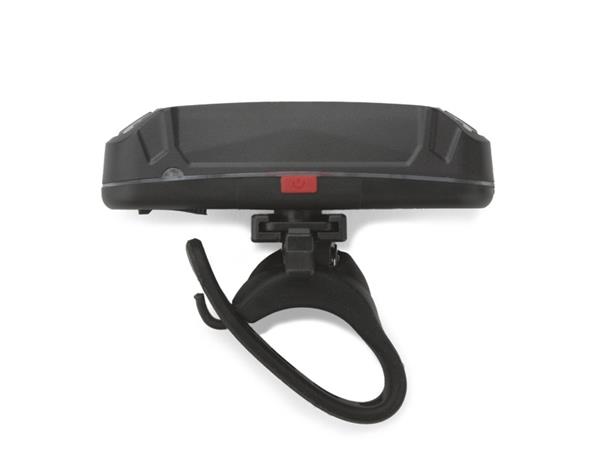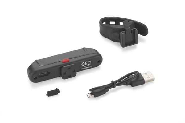 Lampka rowerowa FARO to świetny gadżet dla rowerzystów. Wyposażona jest w diody LED COB i wbudowany akumulator o pojemności 500 mAh. Posiada pięć trybów działania: czerwone i białe światło stałe, dwa tryby światła czerwonego migającego oraz światło czerwone i białe migające naprzemiennie. Dzięki temu może być wykorzystana zarówno jako lampka przednia, jak i tylna. W zestawie dołączony kabel micro USB do ładowania. Posiada wygodny silikonowy uchwyt.