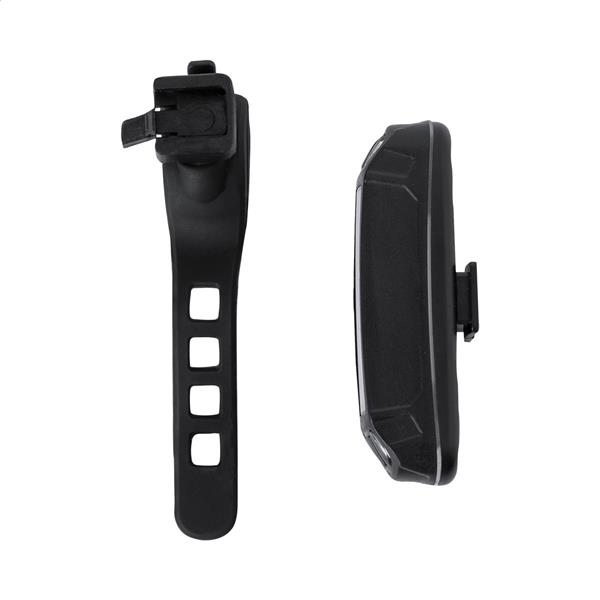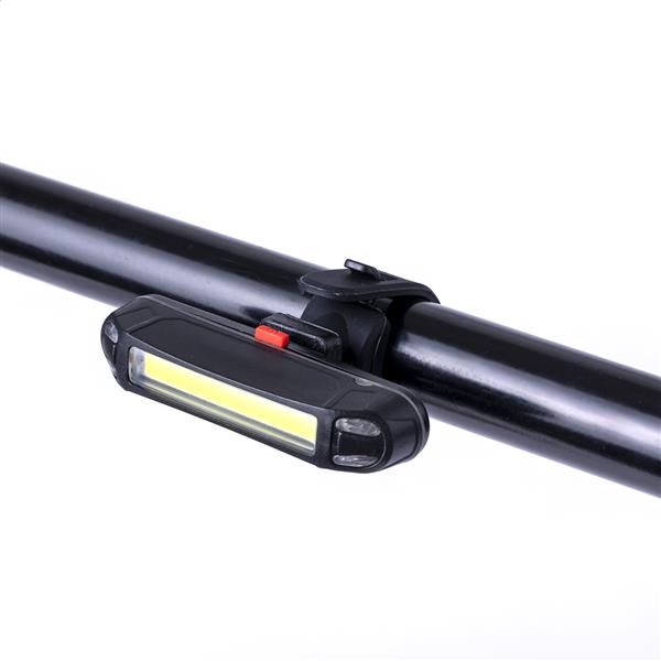 Plastikowa lampka rowerowa ABS z reflektorem COB dużej mocy (światło białe i czerwone), wbudowanym akumulatorem USB (350 mAh) i elastycznym paskiem. Z trybami światła stałego i migającego. W zestawie kabel do ładowarki USB. Nie oferowany w następujących krajach: DE, AT, CH.