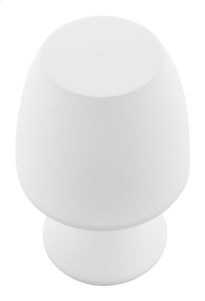 Plastikowa lampa stołowa z białym światłem LED. Działa z 3 bateriami AAA, bez baterii.