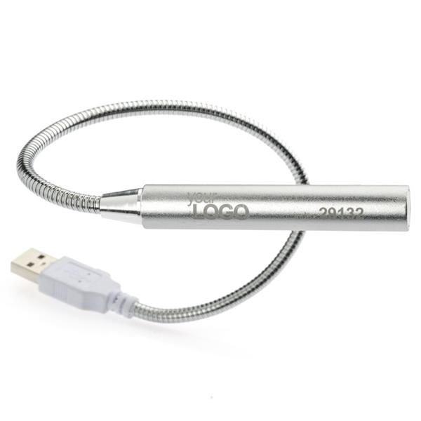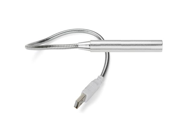 Lampka wykonana z metalu zasilana energią z portu USB, np. z laptopa lub power banka. Posiada elastyczny pałąk pozwalający na precyzyjne ustawienie lampki oraz 5 diod LED.