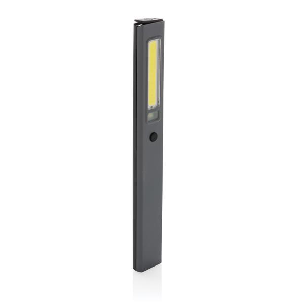 Latarka COB LED, lampka inspekcyjna, magnes z tyłu obudowy, jasność światła COB do 220 lumenów, LED do 80 lumenów, wykonana z materiałów z recyklingu, całkowita zawartość materiałów z recyklingu obliczona na podstawie wagi całkowitej przedmiotu: 36%, wbudowana bateria 520 mAh, 3 tryby świecenia, wejście USB typu C, czas świecenia na jednym ładowaniu do 3 godzin, ślad węglowy produktu: 0 kg CO2