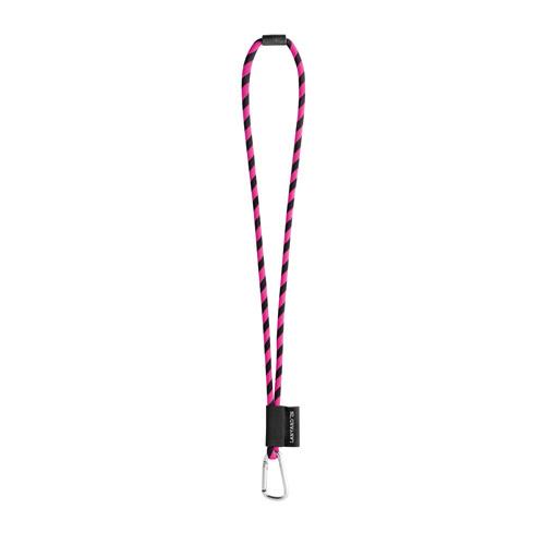 Personalizowana smycz Lanyard, długa smycz sznurkowa z poliamidu, w 17 standardowych kolorach dostępnych do personalizacji. Zawiera następujące akcesoria i dodatki: czarna gumka, etykieta sublimacyjna 43 x 22 mm, metalowy haczyk 55 mm i zamek bezpieczeństwa o6 mm. o7 x 470 mm