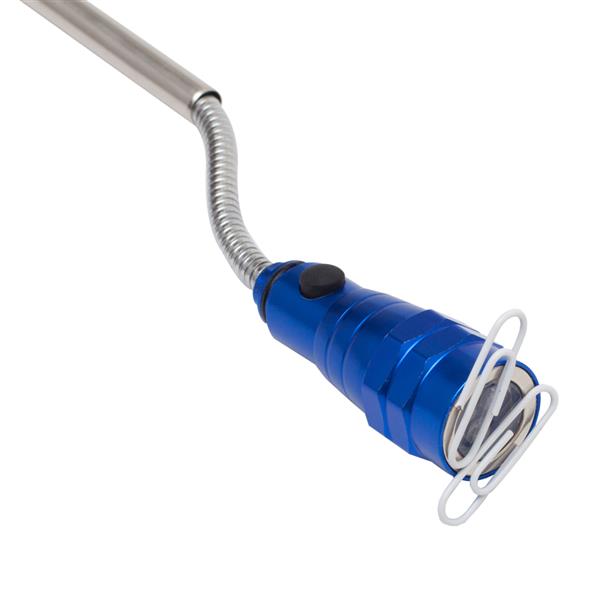 Metalowa wysuwana latarka. Teleskop o długości 38,5 centymetrach Wyposażona w 3 białe diody LED, o sumarycznym strumieniu światła 10 lumenów. Zaopatrzona w klips oraz magnesy na obu końcach. Zasilana 4 bateriami typu AG13 (w cenie produktu).