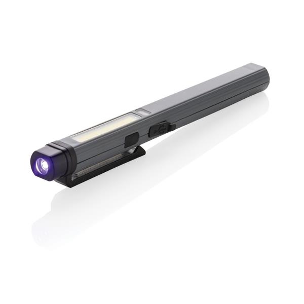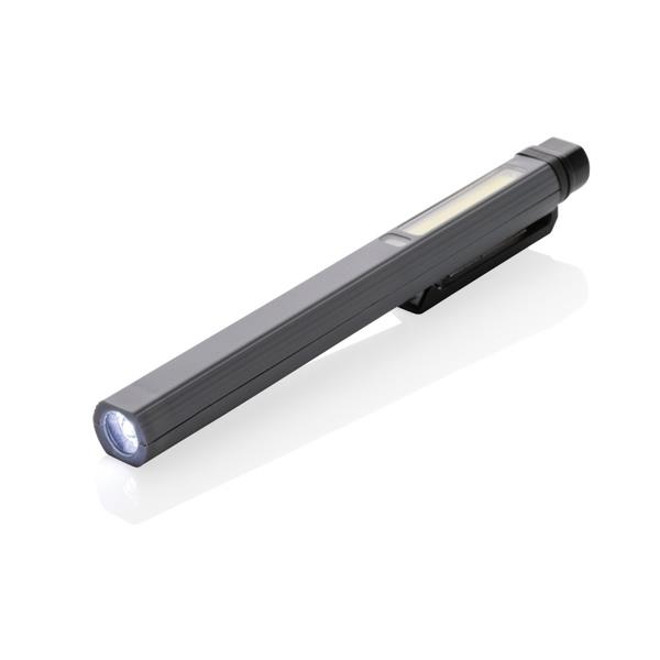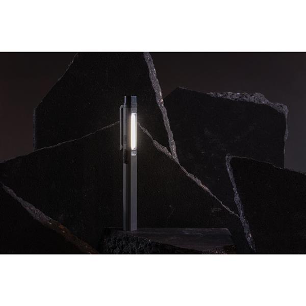Latarka COB LED, kieszonkowa lampka inspekcyjna, magnes z tyłu obudowy, jasność światła COB do 260 lumenów, LED do 80 lumenów, wykonana z materiałów z recyklingu, całkowita zawartość materiałów z recyklingu obliczona na podstawie wagi całkowitej przedmiotu: 33%, wbudowana bateria 460 mAh, 2 tryby świecenia, wejście USB typu C, czas świecenia na jednym ładowaniu do 3 godzin, ślad węglowy produktu: 0 kg CO2