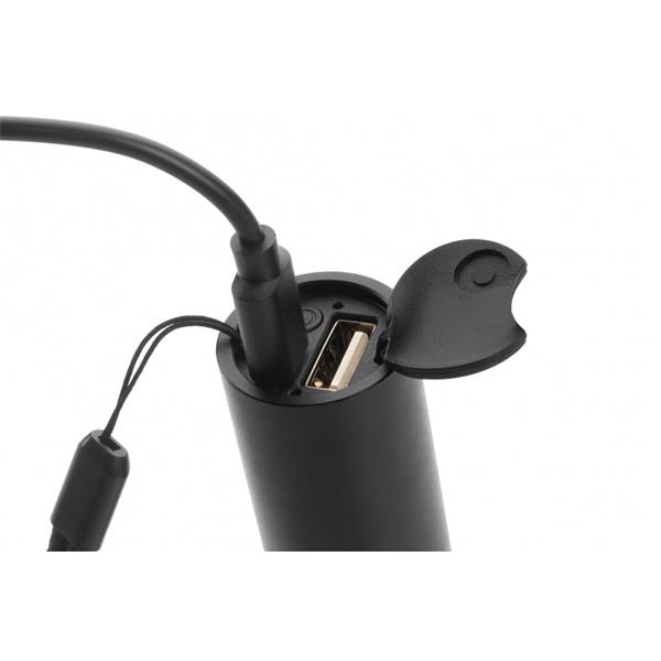 Latarka ładowalna Schwarzwolf z paskiem na nadgarstek. Zawiera diodę XPG o mocy 5W. Posiada 3 tryby świecenia: mocne, migające i SOS. Dłuższe naciśnięcie przycisku umożliwia włączenie ściemniania. Latarka daje możliwość zmiany oświetlenia zoom i zawiera lampkę kontrolną ładowania.W zestawie ładowalna bateria litowa 3,7 V o pojemności 2000 mAh i kabel do ładowania USB-C. Czas ładowania baterii wynosi 3 godziny, czas rozładowania 3,5 godziny.