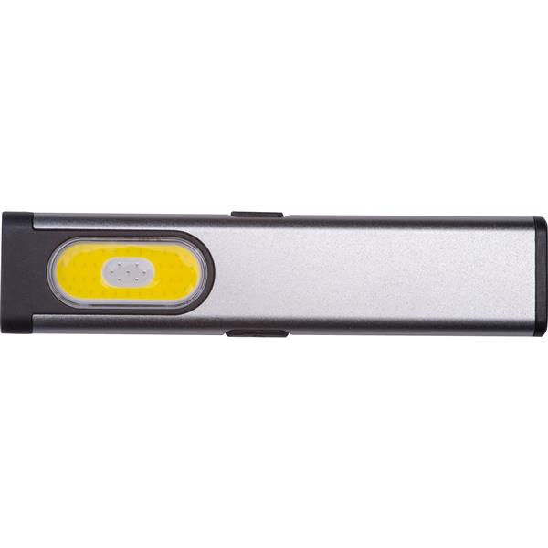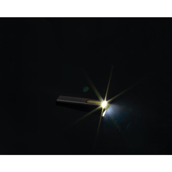 Latarka o pojemności 450 mAh, wykonana z aluminium z recyklingu, z bocznym światłem 160 lumenów i przednim 80 lumenów i magnetyczną krawędzią.