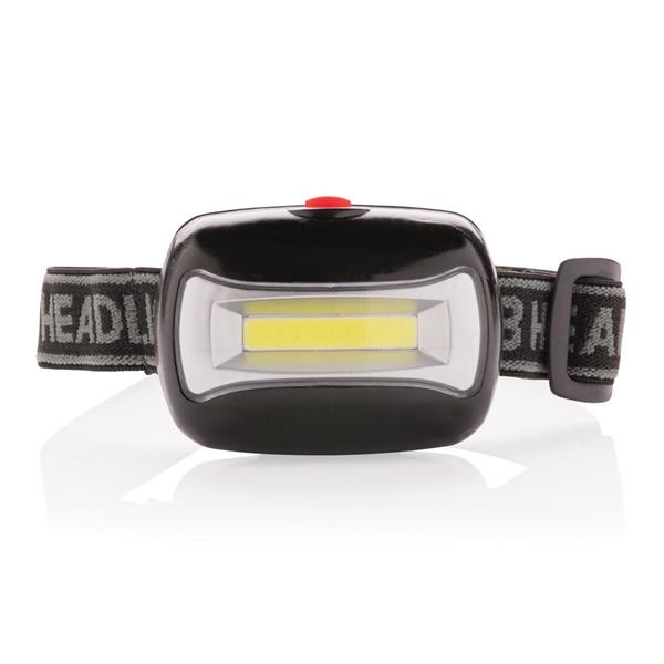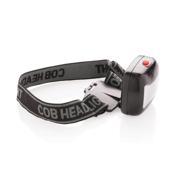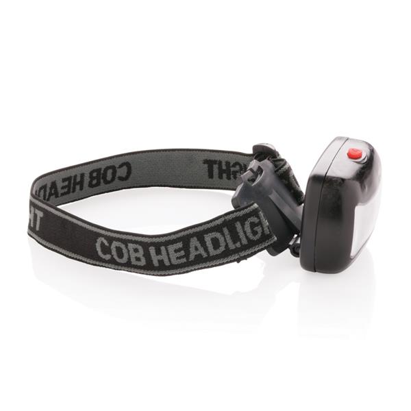 Latarka na głowę COB z regulowanym paskiem, bardzo jasne światło, wykonana z ABS, baterie w komplecie, ślad węglowy produktu: 0,65 kg CO2